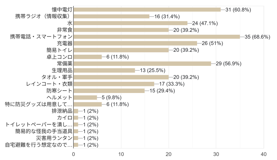 ◼︎「「防災グッズとしてすぐに持ち出せる」ようにしているものはありますか?あてはまるものをすべてお知らせください