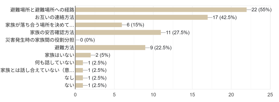 ◼︎災害発生時の対応について、家族間で話し合っていることについて、あてはまるものをすべてお知らせください