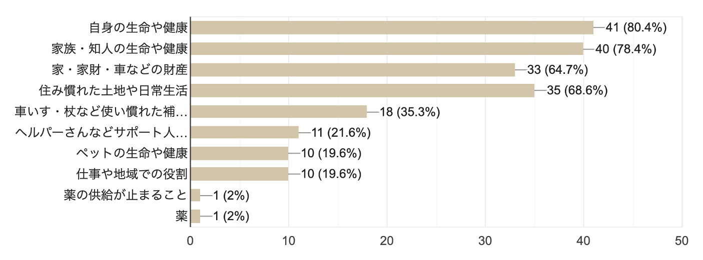 ◼︎ああなたは災害によって何を失うことに不安を感じていますか。あてはまるものをすべてお知らせください